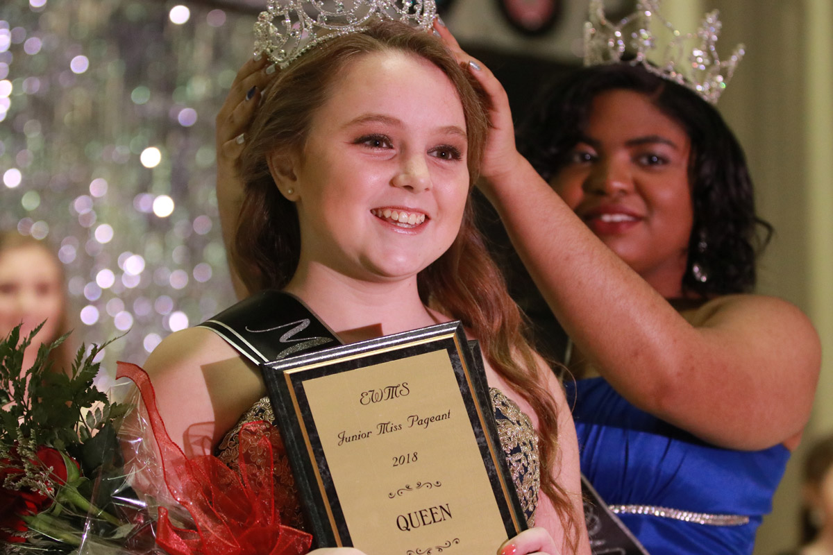 Pictured top: Third runner-up McKenna Rae Simmons, second runner-up Elianna Teresa Morales, Miss EWMS Chloe Adle Ragsdale, and first runner-up Carsyn Laine Dortch. Pictured below: The contestants in the annual pageant. Pictured below: Miss EWMS 2018 Chloe Adele is crowned by outgoing Miss EWMS 2017 Tavianna Parker. NorthEscambia.com photos, click to enlarge.
