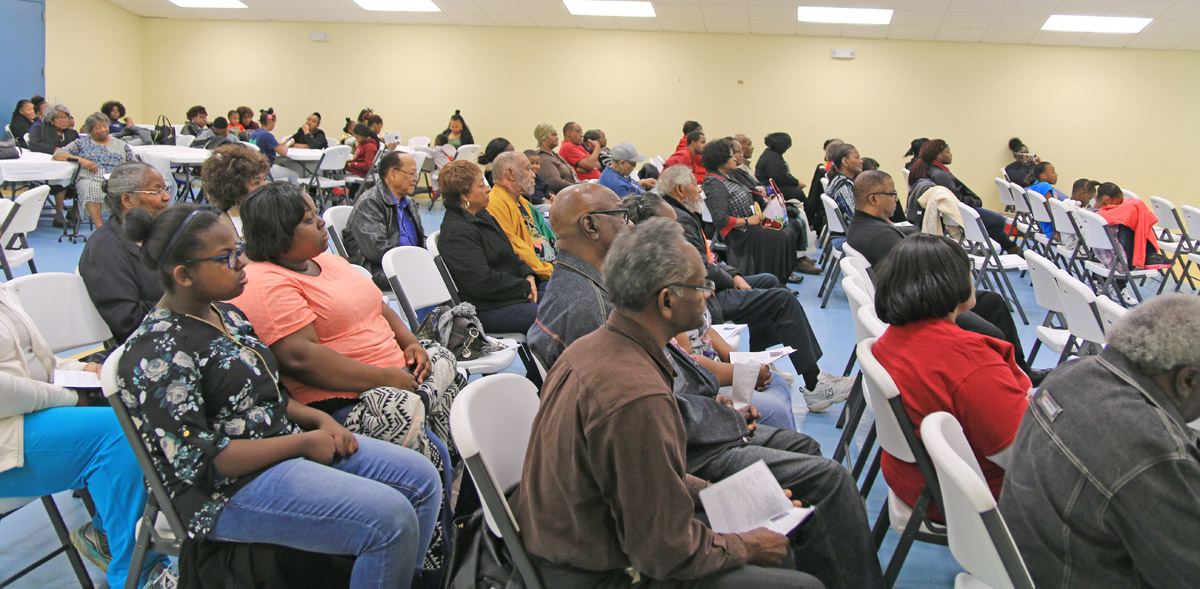 Pictured: A crowd attends Martin Luther King Day event inside the Ag Building in Center on Monday, January 15. According to the mayor, the building has not had a required fire safety inspection since 2012 and fire extinguishers were removed from the facility. Pictured below: The Century Business Center. NorthEscambia.com file photos, click to enlarge.