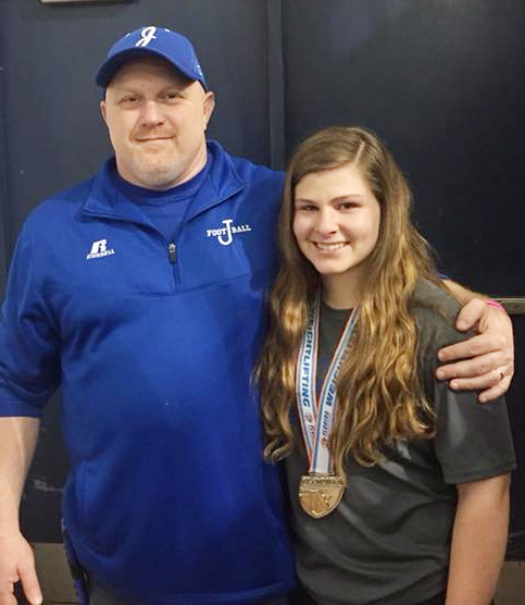 Haylee Watson of Jay High School placed second in the state weightlifting championships Friday in the Class 1A-139 lbs. Division. Watson had a bench press of 185 pounds, just five pounds of first place and a clean/jerk of 165 pounds, equal to the first place finisher.