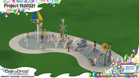 The splash pad at Heritage Park on South Main Street will be about 2,000 square feet and will have a covered seating area for parents.