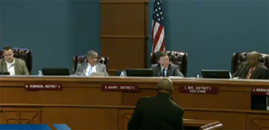 Pictured: Century Mayor Henry Hawkins addresses the Escambia County Commission Thursday night in Pensacola. Images for NorthEscambia.com, click to enlarge.