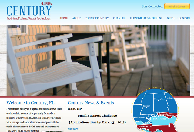 Pictured: The Town of Century’s current website, which has had no apparent updates since February 2015. NorthEscambia.com image.