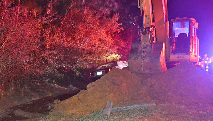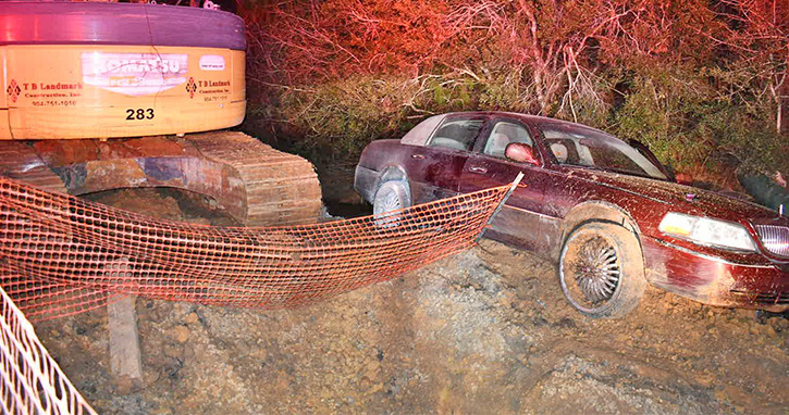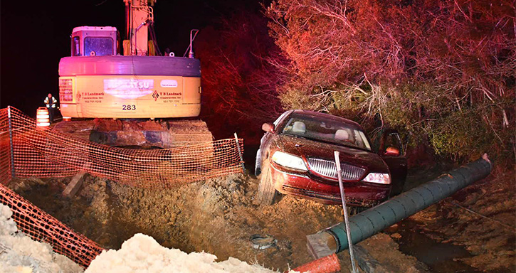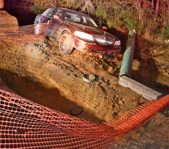 A driver, according to witnesses, traveled southbound in the northbound lanes of Highway 29 near Highway 95A before running off the road into a pipeline construction zone. The driver ran into the ditch, barely missing construction equipment and stopping just short of a large hole.