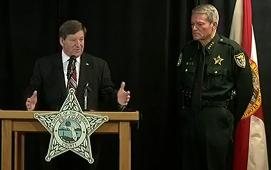 Pictured top. Escambia County School Superintendent Malcolm Thomas addresses school security as Sheriff David Morgan listens Friday afternoon.