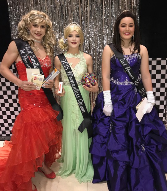 Pictured above: First Runner up Noah “Noelle Fancy” Harigel, Womanless Queen Kaden “Norma Gene” Odom and Second Runner-up Andrew “Andrea Louise” Hatcher. Photos for NorthEscambia.com, click to enlarge.