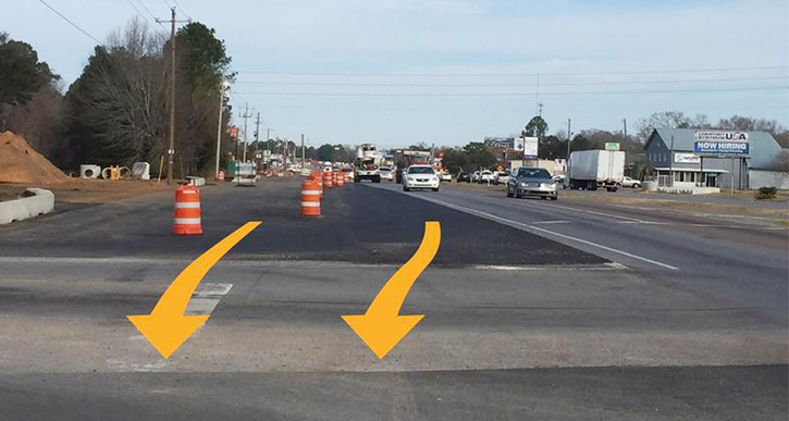 Southbound traffic shifts westward today onto new temporary pavement on Highway 29 between Hannah Street and I-10. The shift will allow crews to complete the placement of cross drains across the existing southbound lanes. The traffic shift will remain in place for several months, according to the Florida Department of Transportation. Photo for NorthEscambia.com, click to enlarge.