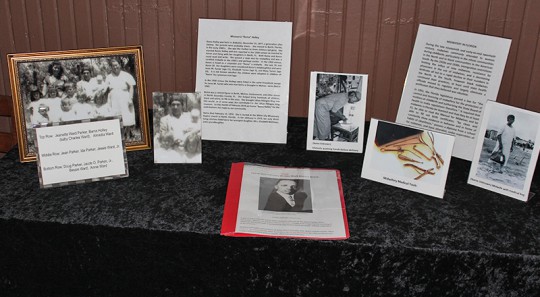 Pictured (top row) Jeanette Ward Parker, midwife Bama Holley holding baby Charles Ward, Almedia Ward, (middle row) Jean Parker, Ida Parker, Jessie Ward, Jr. (bottom row) Doug Parker, Jacob O. Parker, Jr., Bessie Ward and Annie Ward in an undated photograph. Pictured below: The Bama Holley exhibit in the Lillian F. King Museum in the Molino Community Center. Pictured bottom: Bama Holley’s obituary. Photos for NorthEscambia.com, click to enlarge.