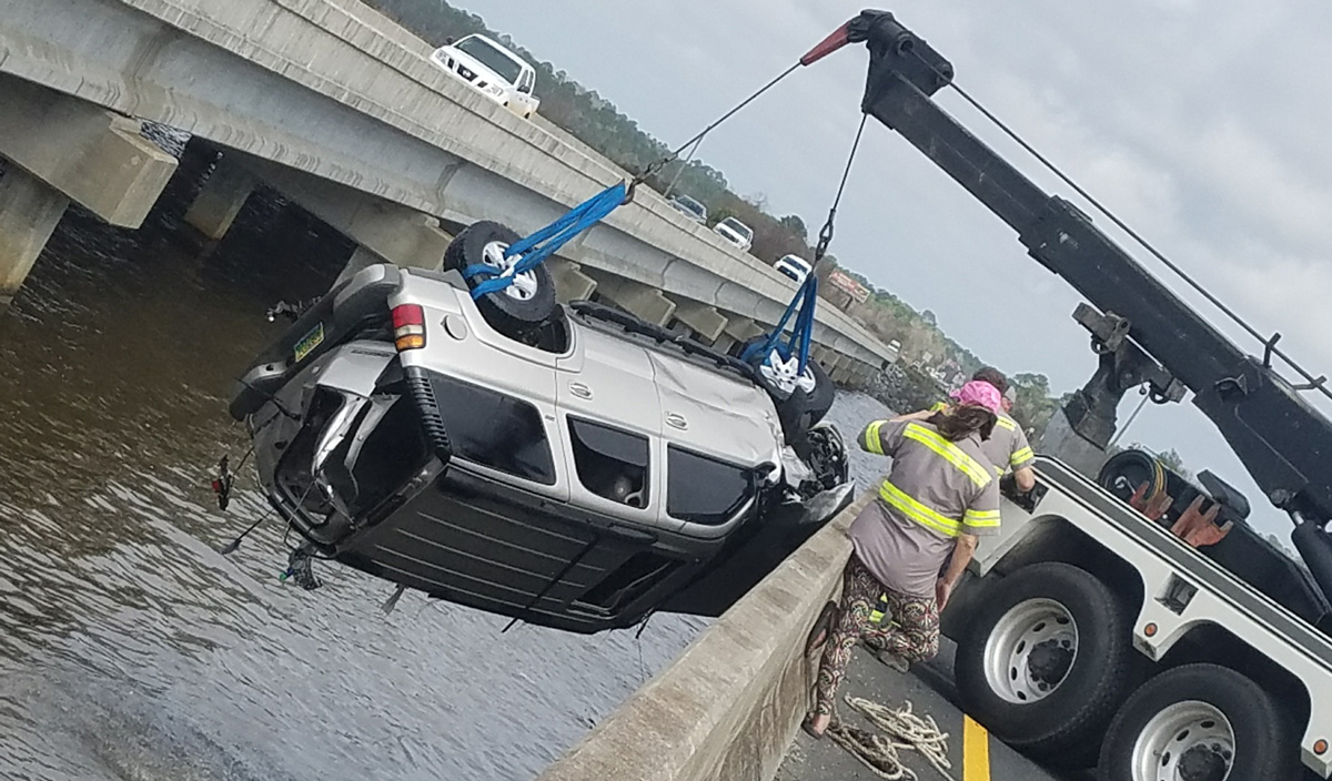 Atmore Man’s Car Goes Over Bridge Guardrail (With Photo Gallery)