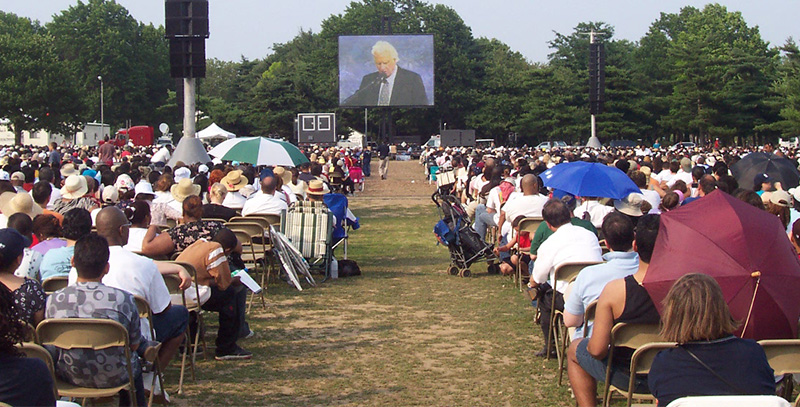 Pictured top and lower inset: Billy Graham’s final crusade June, 26, 2005, outside New York City. Photos by Raja Atallah. Pictured top inset: A flyer advertising the crusade, courtesy Tim Hawsey. Pictured below: A group from the First Baptist Church of Bratt in June 2005 at the site of the Billy Graham crusade, courtesy First Baptist Church of Bratt. Submitted for NorthEscambia.com, click to enlarge.