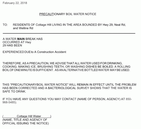 Boil Water Notice Issued For Cottage Hill Area Homes, Businesses And School