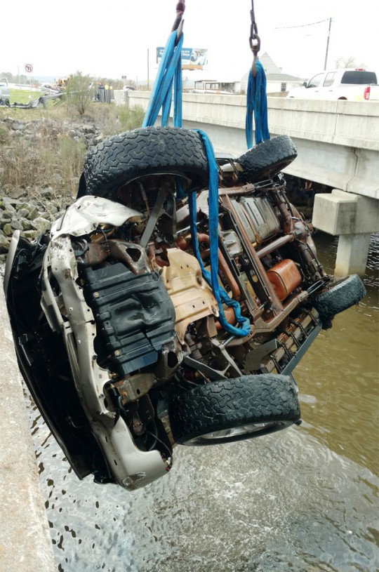 Impact with the guardrail sent the Tahoe into the air before entering the water, the FHP report said. The Tahoe came to rest fully submerged.