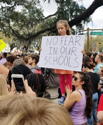 “This tragedy has taught us to be fearless, because we now know what it feels like to be afraid,” Rachel Catania, 15, a sophomore from Marjory Stoneman Douglas High, told a roaring crowd. “How many more innocent people have to die before we make a change? Change is overdue. And we are the change. When leaders act like children and children act like leaders, you know something is about to change.”