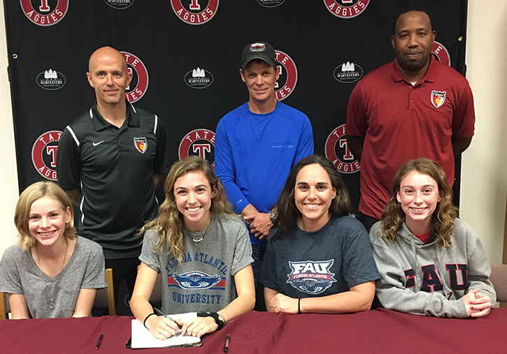 Tate High School’s Emma Grissom signed a Division I soccer scholarship with Florida Atlantic University on National Signing Day. She scored almost 100 goals during her career at Tate, and has been a leader on her Gulf Coast Texans travel team for eight years.