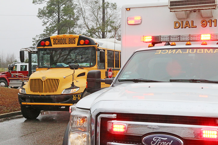 There were no injuries on the bus; Brown and one other occupant from the Monte Carlo were transported by ambulance to Atmore Community Hospital with minor injuries.