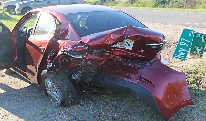 According to witnesses, a driver was waiting to make a turn from Highway 97 onto Meadows Lane south of the Piggly Wiggly store, when she was rear-ended by a black Kia Soul driven by 53-year old Cheryl Rene Parrish of McDavid about 4:20 p.m. Witnesses further stated that Parrish and the Kia Soul then struck a Nissan car before running several other drivers off the road and continuing south on Highway 97.