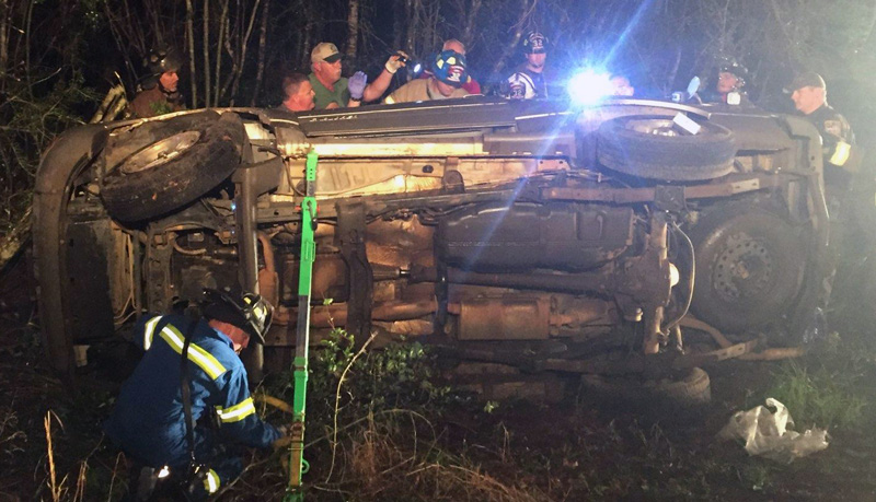 The victims were trapped in the vehicle before being extricated by firefighters.