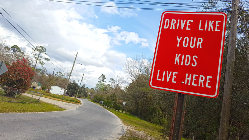 It’s Spring Break this week in Escambia County, FL. And this sign on Old Flomaton Road in Century offers good advice with kids out playing this week — “Drive Like Your Kids Live Here”. NorthEscambia.com photo, click to enlarge.