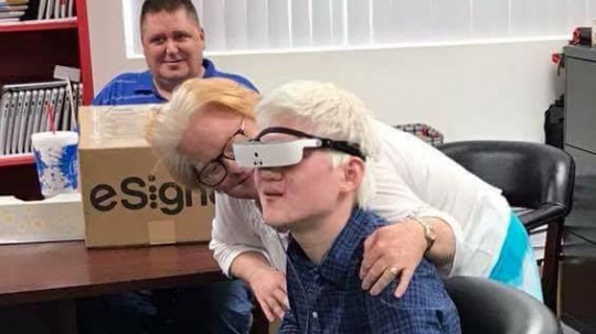 So Noah’s classmates raised nearly $10,000 in just a few weeks to purchase a special pair of eSight glasses to allow him too see clearly again. The life-changing technology uses a high quality camera to projects a live feed onto two small screens in front of the wearer’s eyes.
