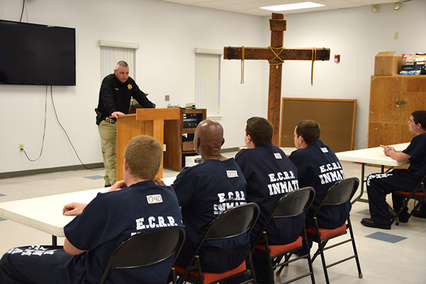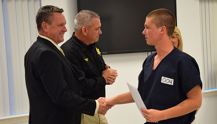 Ceremony attendees included Road Prison Commander Charles Snow, Escambia County Corrections Director Tammy Jarvis, Assistant County Administrator Matt Coughlin, Instructor Danny Cain and George Stone Technical Center Principal TJ Rollins.