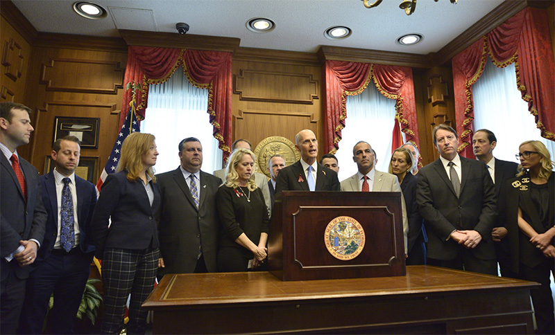 “Will this bill make a huge investment and dramatically improve school safety, in the hopes of never seeing another tragedy like this again? Will this bill provide more funding to treat the mentally ill? Will this bill give far more tools to keep guns away from people who should not have them? The answer to all three is yes. That is why I am signing the legislation today,” Scott, said, as media from across the nation, crammed into the governor’s office, looked on.