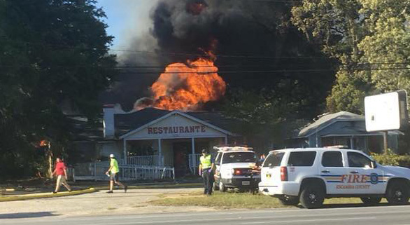 An abandoned restaurant in the 600 block of on East Nine Mile Road burned Wednesday afternoon. There was no immediate word on the cause of the fire. There were no injuries reported. Photos for NorthEscambia.com by Sarah Roy and other readers, click to enlarge.
