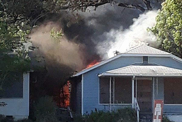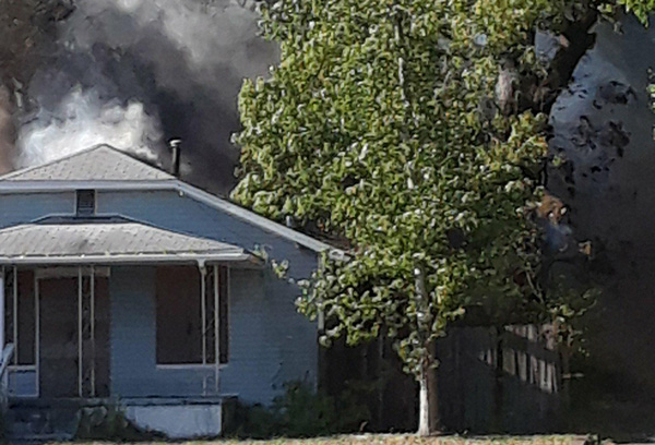 The pictures seem to show flames in the back part of the main building and flames in the small house next door. It looks like 2 separate fires in 2 separate buildings.