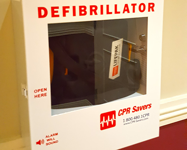 Pictured: An AED installed in the lobby of the Century Town Hall. NorthEscambia.com photos, click to enlarge.