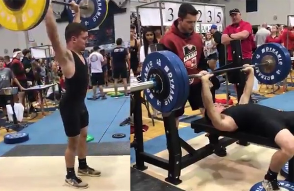 In the bench press, Kite pressed 235 pounds, while he cleaned and jerked 210 pounds for a 445 pound total.