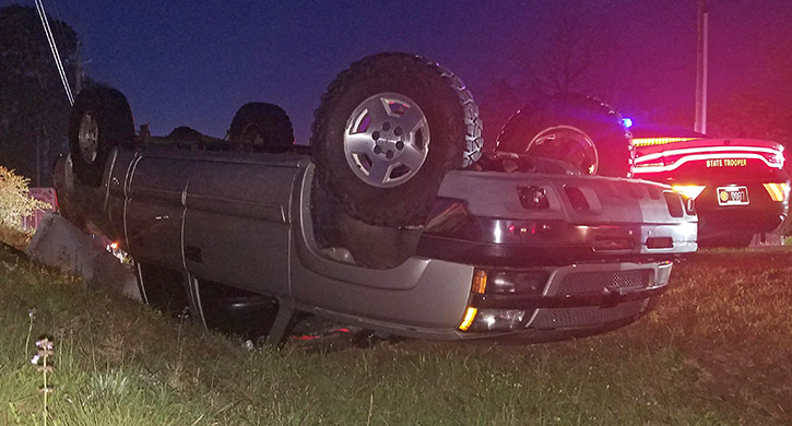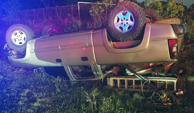 One person was injured in a single vehicle rollover accident about 6:45 p.m. Monday at East Kingsfield Road nearĀ Tate Road. Additional details have not been released as the Florida Highway Patrol continues their investigation. NorthEscambia.com photos by Kristi Barbour, click to enlarge.
