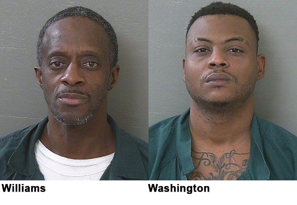 Washington allegedly knocked on the female victim’s door about 4 a.m. while dressed in a dark colored hoodie and camouflage pants. As she was closing the door, he pulled the door back and shoved the female backwards, according to an arrest report, with both men entering the home. Washington then allegedly pulled a gun and pointed it the victim’s face while demanding money. Washington allegedly took the cash and headed it to Williams before both men ran out the front door.