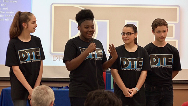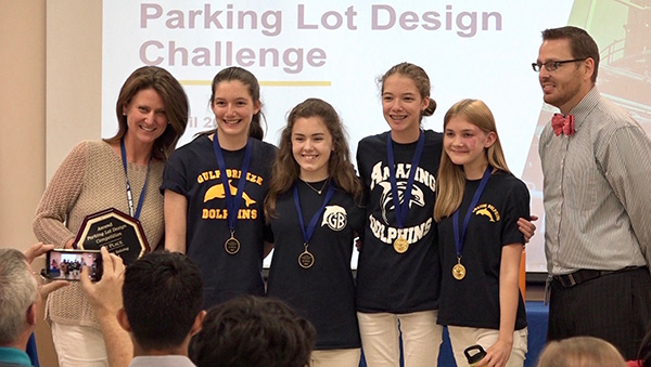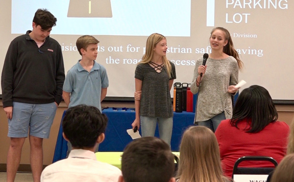 Teams of middle and high school students presented their ideas to redesign the primary administrative parking lot at the company.
