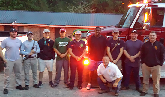 Pictured top: Flomaton Fire Chief Steve Stanton with Deverick Williams and his mother Saturday night. Pictured inset: Deverick posses with members of the Flomaton Fire Department. Photos for NorthEscambia.com, click to enlarge.