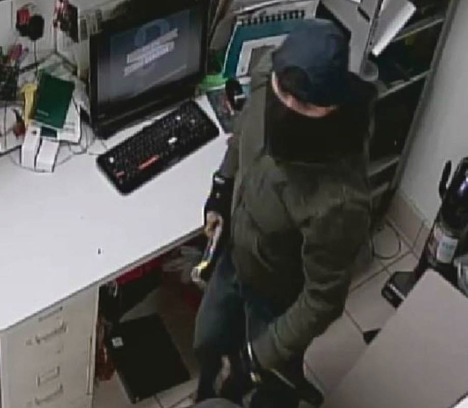 Investigators said the white male “disabled the front door locks” to enter the businesses at 1701 East Nine Mile Road and 2200 West Nine Mile Road. He is described as about six feet tall and was wearing blue jeans,a green jacket, black shoes and a scarf covering his face.