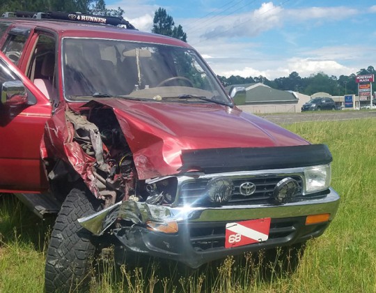 Pictured top: Kelly’s vehicle following a double fatal crash. Submitted photo for NorthEscambia.com, click to enlarge.