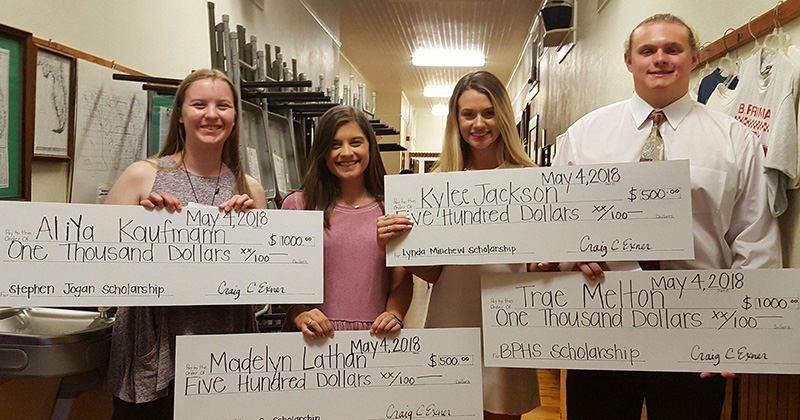 The Barreineau Park Historical Society presented four deserving this school seniors with college scholarships.