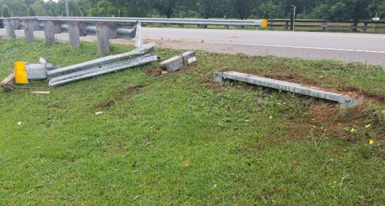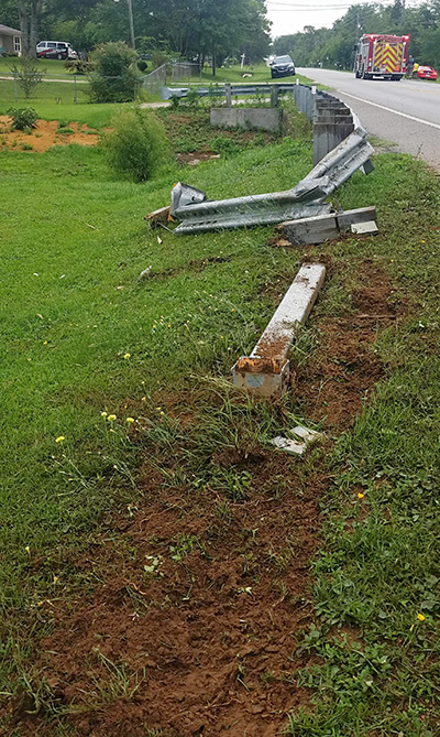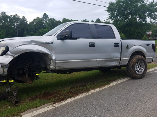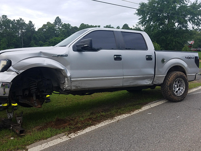 There were no injuries in a single vehicle crash Sunday morning on West Kingsfield Road near South Highway 97. The driver of a Ford F150 left the roadway and struck a guardrail. The accident is under investigation by the Florida Highway Patrol. NorthEscambia.com photo by Kristi Barbour, click to enlarge.