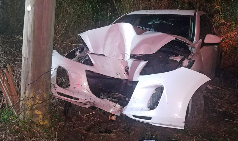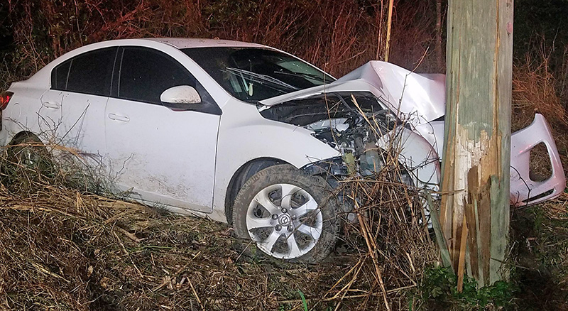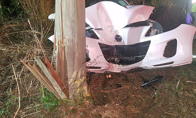 One person was injured in a collision with a utility pole in Cantonment early Saturday morning.