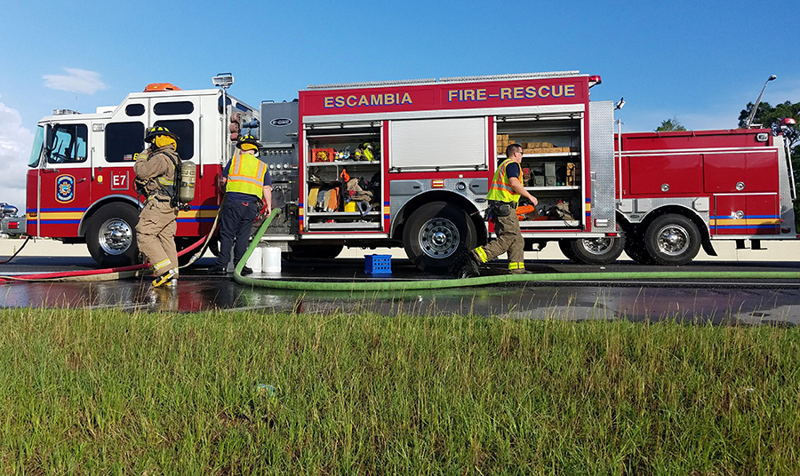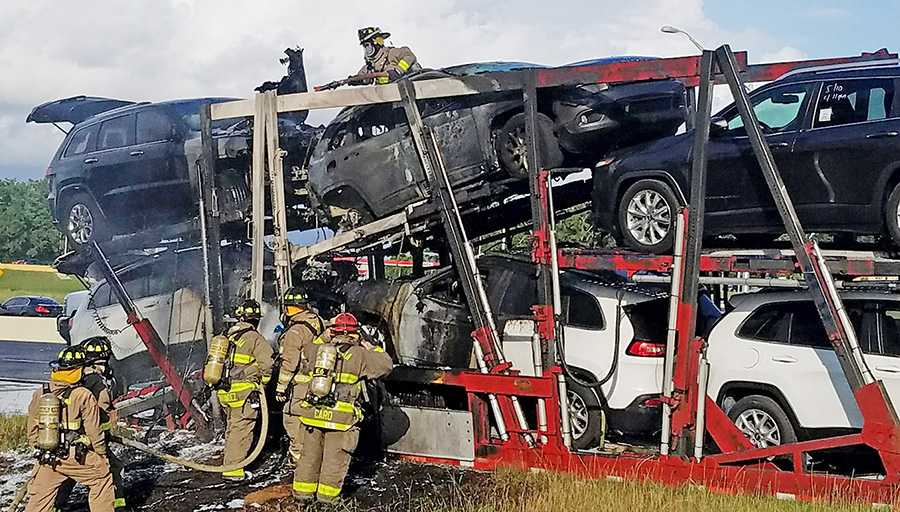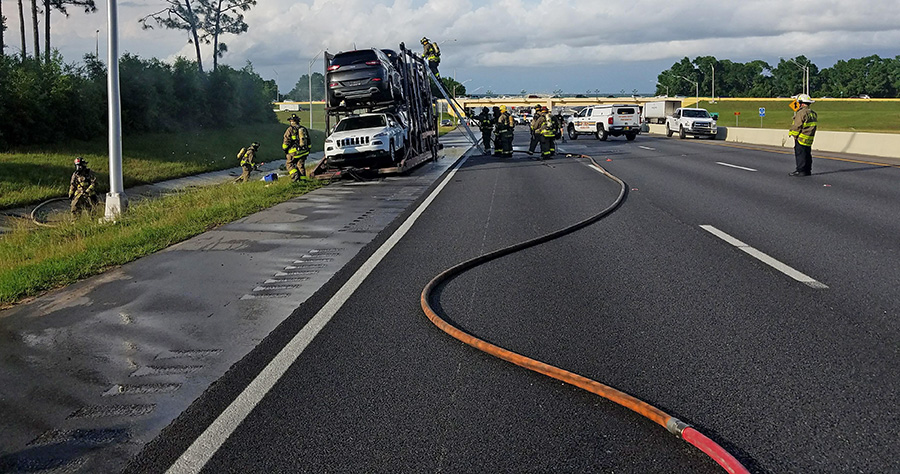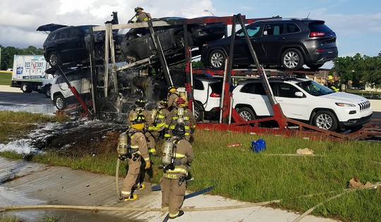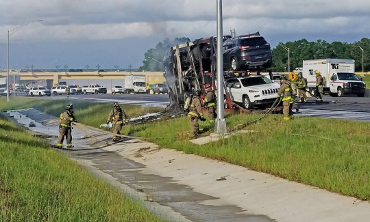A vehicle fire caused major traffic problems on I-10 westbound at Scenic Highway Wednesday afternoon. Several vehicle on an auto-hauler were destroyed in the blaze. The driver managed to detach the truck from the trailer.