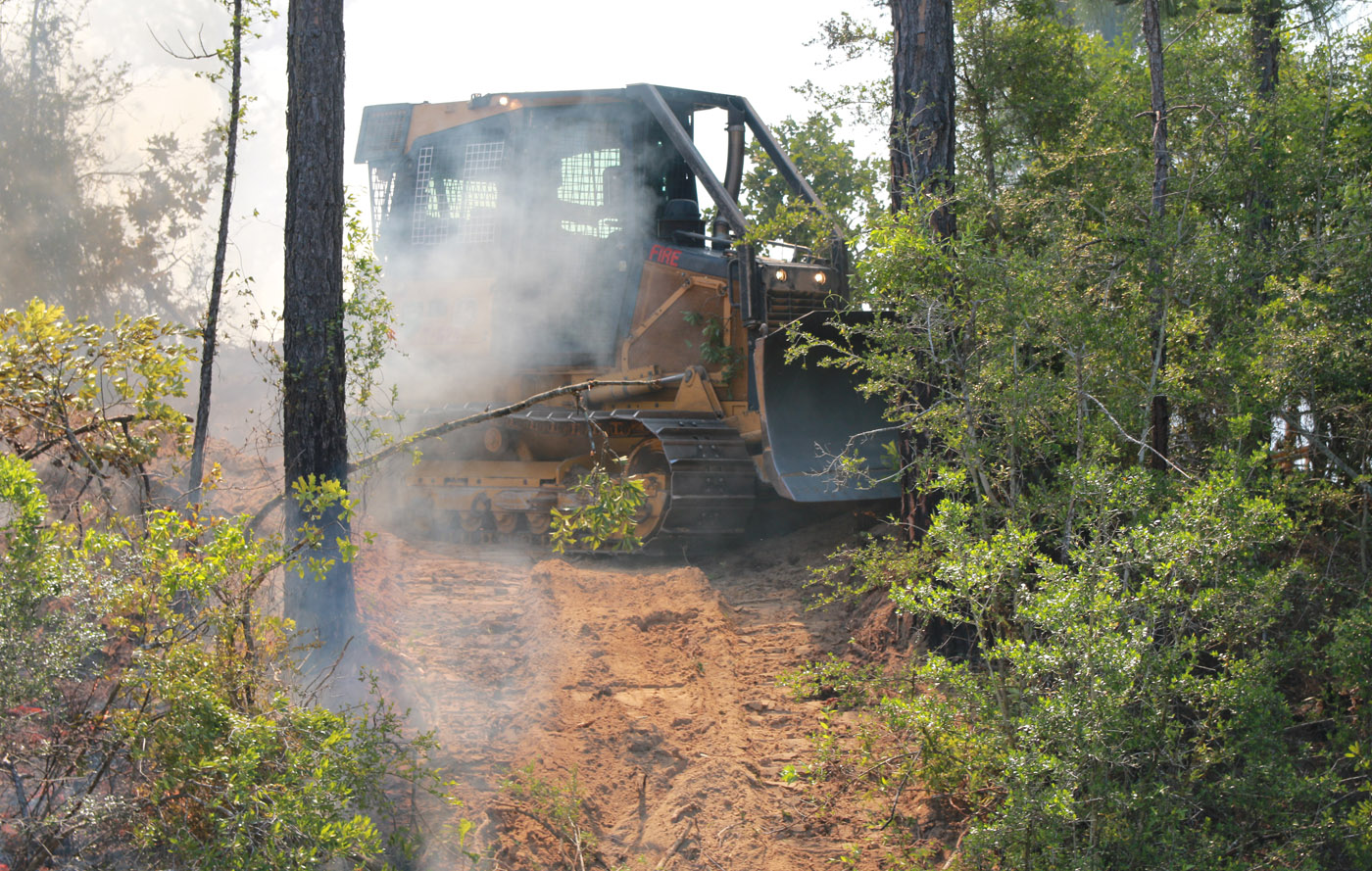 The Florida Forest Service responded with three tractor/plow units and a brush truck, joining firefighters from the the McDavid, Walnut Hill, Molino, Century and Cantonment stations of Escambia Fire Rescue in battling the blaze. The Escambia County Sheriff’s Office provided traffic control.