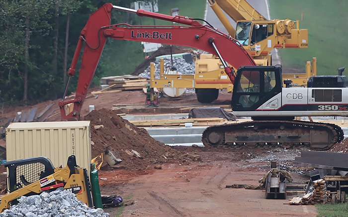 Work is continuing on a new bridge on Barrineau Park Road (Hwy. 196) over Jacks Branch in Molino. The old bridge has been removed and crews are constructing a replacement bridge over Jacks Branch, adding new guardrail and reconstructing the approach slabs.