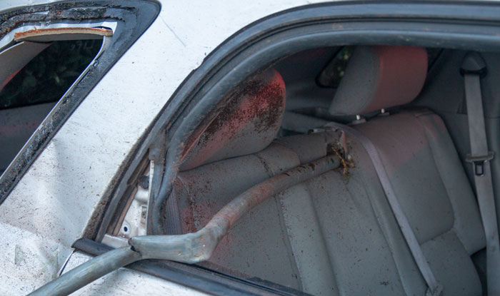 After the collision, the Charger caught fire and struck a tree.