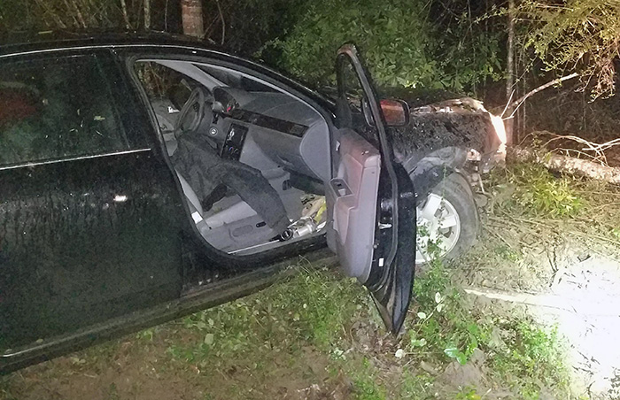 A driver lost control and left the roadway, running into a wooded area about 10:15 p.m. Bystanders reported that the driver was out of the vehicle and walking away on foot; there was no word if he returned to the crash on Highway 95A north of Barrineau Park Road.