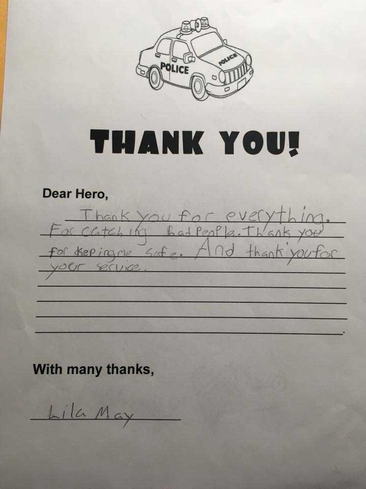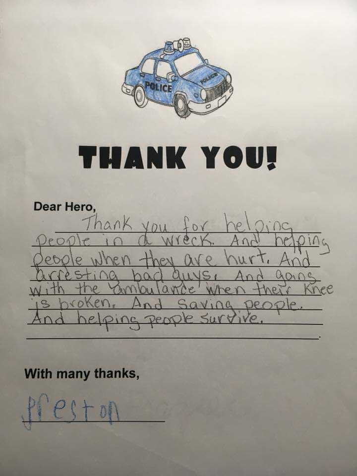 “You’re amazing,” Micah Frazier wrote. “Thank you for saving us from bad guys.”
