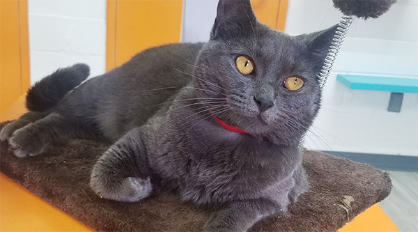 – Violet, pictured below, a a silvery-gray package of pure love. This one year-old female is not only gorgeous, but is incredibly sweet. She loves posing for the camera, and she is most happy snuggling in a lap.