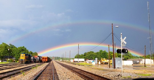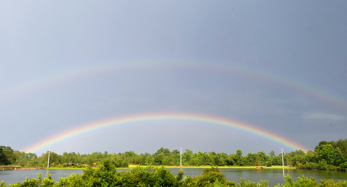 Pictured: Rainbows at the train yard in Flomaton, just north of the Florida line (above) and on Old Flomaton Road just north of Campbell Road in Century (below). Reader submitted photos by Shyanne Johnson for NorthEscambia.com, click to enlarge.