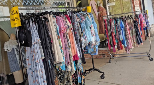 Pictured: The Tot Shop on South Main Street in downtown Atmore held a sidewalk sale Friday, the first day of Alabama’s back to school sales tax holiday. This is the first year Atmore has participated. NorthEscambia.com photo, click to enlarge.