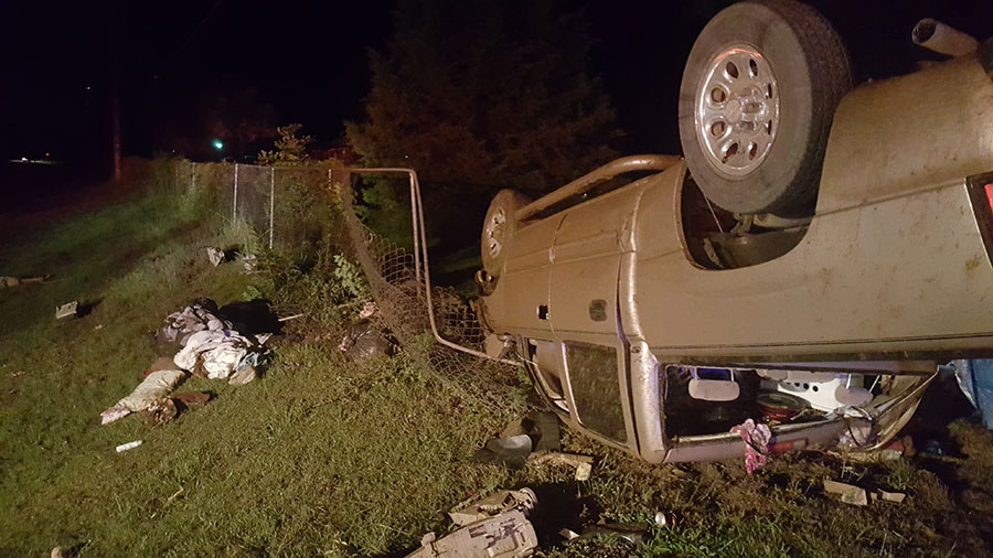 The pickup overturned into a fence on Molino Road near Sunshine Hill Road about 9 p.m. The driver was not around the vehicle when first responders arrived a short time later.