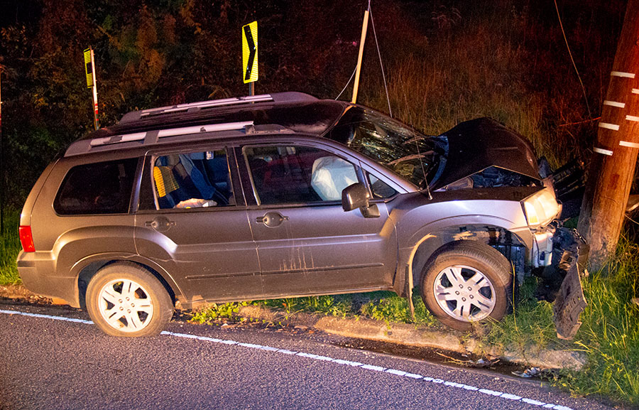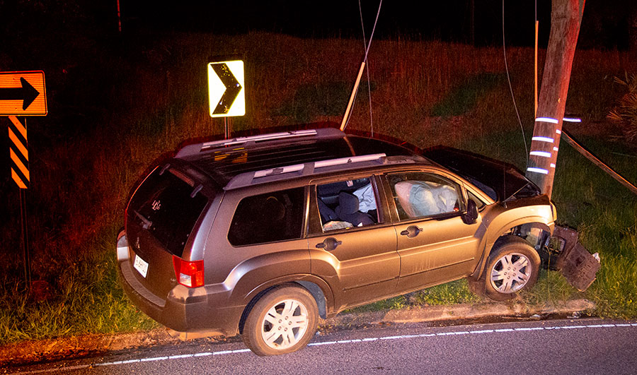 The accident snapped the utility pole and brought down power lines, cutting power to about five Gulf Power customers. Crews worked into the early morning hours to restore service.