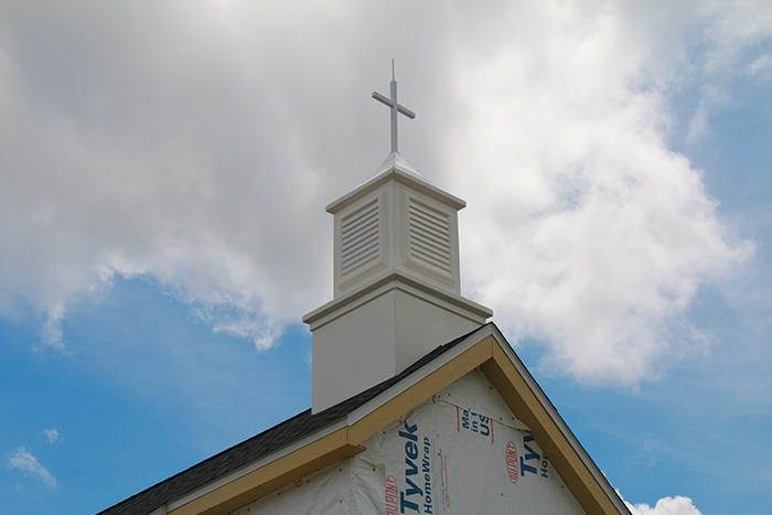 A milestone was reached Tuesday in the rebuilding of a church damaged beyond repair in a February 15, 2016, EF-3 tornado in Century when the cupola with a cross on placed on top.