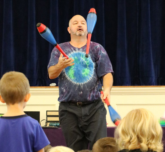 Pictured: Juggler Ron Anglin performed Thursday morning at the Molino Branch Library. Photos for NorthEscambia.com, click to enlarge.